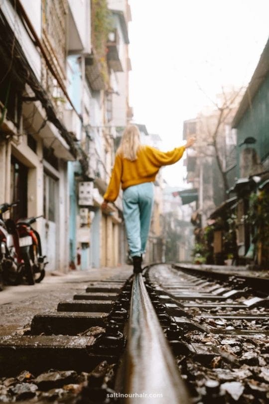 Nằm trong một con phố hẹp, chen giữa những dãy nhà lụp xụp và quán cà phê, có một tuyến đường sắt, nơi có những chuyến tàu chạy qua hai lần một ngày. Con đường xe lửa nổi tiếng thế giới này là một trong những điều đáng ngạc nhiên nhất ở Hà Nội.