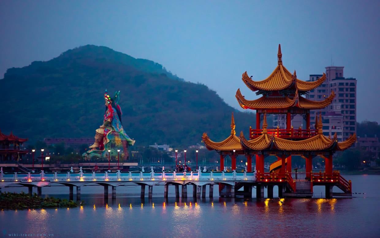 Tại đây có Tháp Long Hổ: là một trong những ngôi chùa có kiến trúc đẹp nhất ở Đài Loan. Ngôi chùa có hai tòa tháp chính là tháp Long và tháp Hổ, mỗi tháp cao 7 tầng, cửa ra vào được thiết kế độc đáo với một bên là Rồng, một bên là Hổ với ngụ ý vào Rồng ra Hổ tượng trưng cho cát tường, thịnh vượng và may mắn.